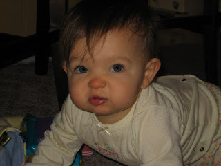 And Natalie may have taken her first step!! She took a step and then immediately took a knee. So if 'first step' is defined by simply taking a step, then Natalie's done it! But if 'first step' means that you have to remain standing, then, well, Lee and I have a little while longer to enjoy her not walking!